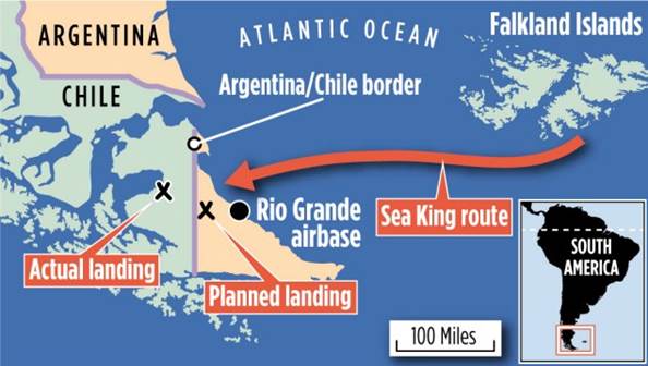 そして5月17日夜、過積載状態のシーキングはインヴィンシブルの飛行甲板を滑走しながら発艦。ハッチングス暗視ゴーグル海面との衝突を避けつつ低空を維持し、フエゴ島のリオグランデ基地を目指しました。