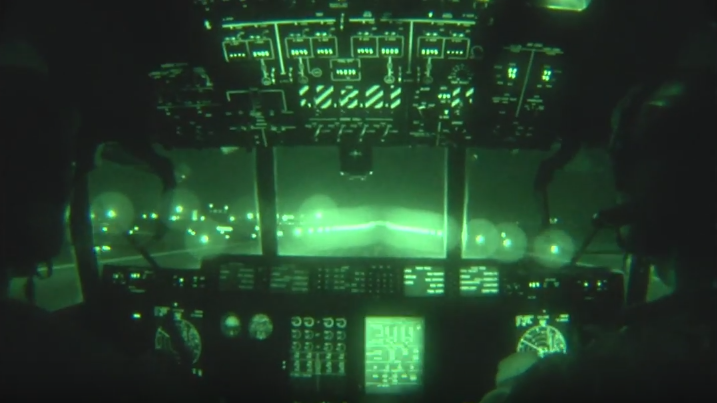 夜間に飛び立つイギリス空軍のC-130(画像は現代使用されているH型)