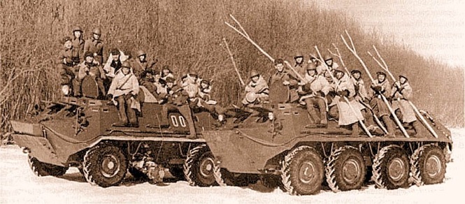 指揮官のストレルニコフ上級中尉ら小隊の兵士32名はBTR-60PB装甲車、GAZ-63トラック、GAZ-69四輪駆動車に分乗し、島へ向かいます。