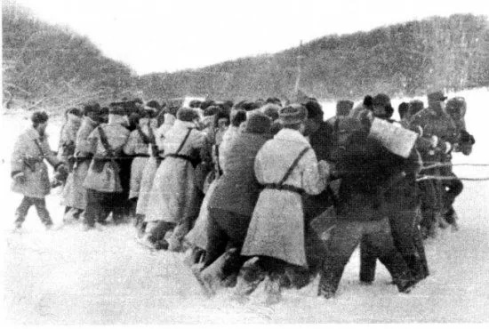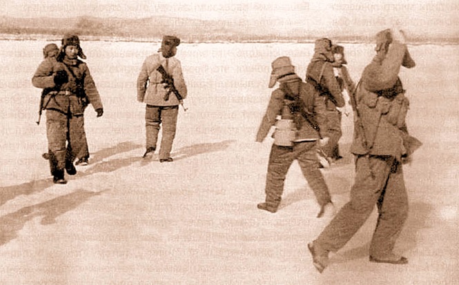 彼らは中国側の国境警備隊で、小銃を携帯していました。しかし、引き金に指をかけることもなく、それを棍棒のように振り回しソ連国境軍を島から追い出そうとしました。
