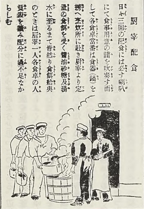 個人ごとの体格差や労働量の違いを無視して、一律に同じ量の食事を支給しても不足を感じる人が出る一方で、反対に残飯が生じるという矛盾につながる…ということみたいなんですが、組織の構成員全員に対して一律に画一的な待遇を供することが、必ずしも全員を平等に満足させることには繋がらない…というのは、軍隊に限らず、色んなトコロで生じうる問題ではありますですかも…?